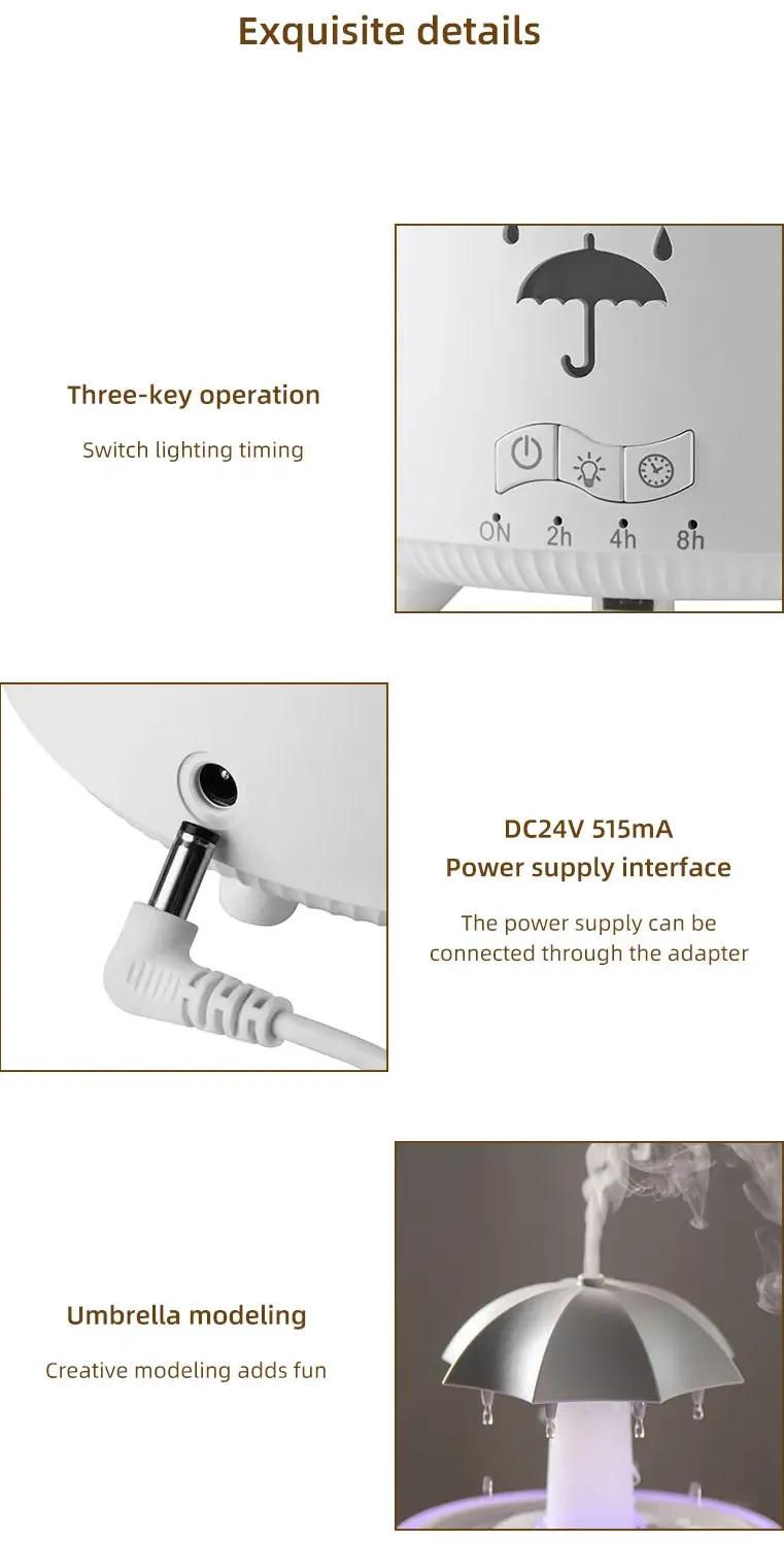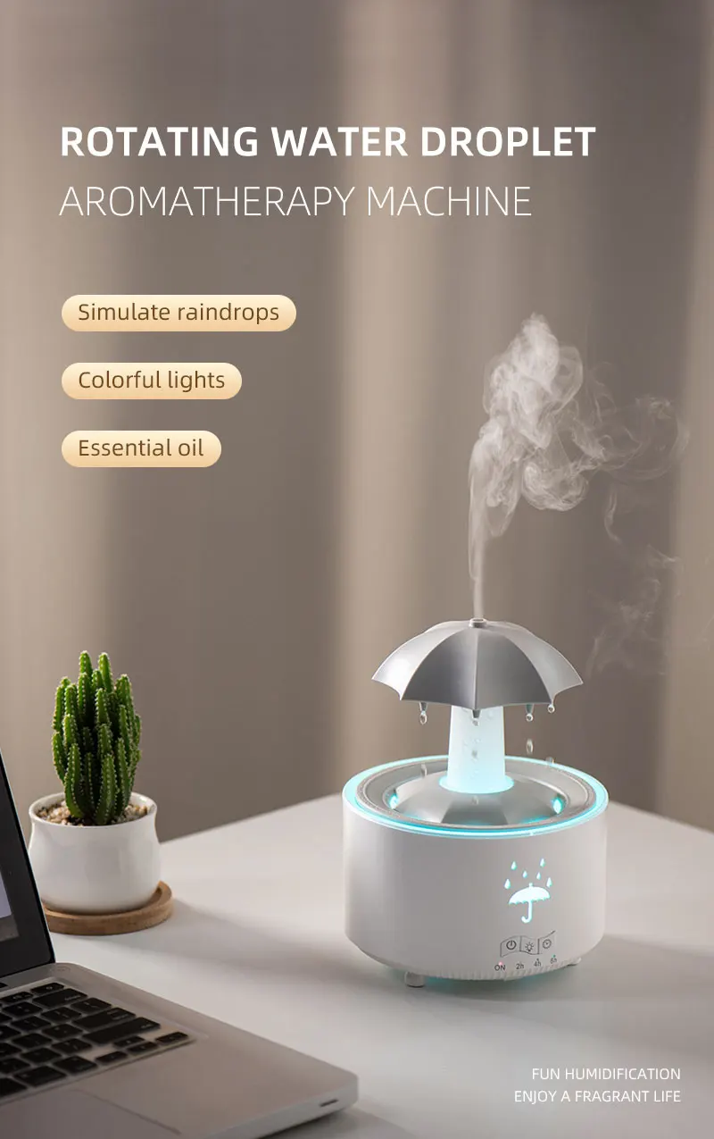 1. Creative raindrop air humidifier with romantic rainbow and warm light